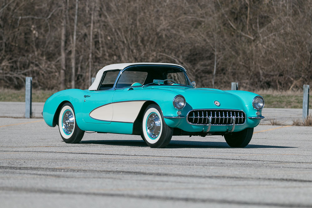 450th Anniversary Edition Corvette 57 - The 1957 Chevrolet Corvette was the first model offered with optional fuel injection, and (in my opinion) the best-looking of the first-generation (model years 1953-1962) Corvettes. The 450-57 (as it is known among aficionados) is not an exact duplicate of the 1957 model, but looks a lot more like one than the "regular" 2407 Corvette. Léonne's is Cascade Green and white over white leather, if you're into that kind of detail.