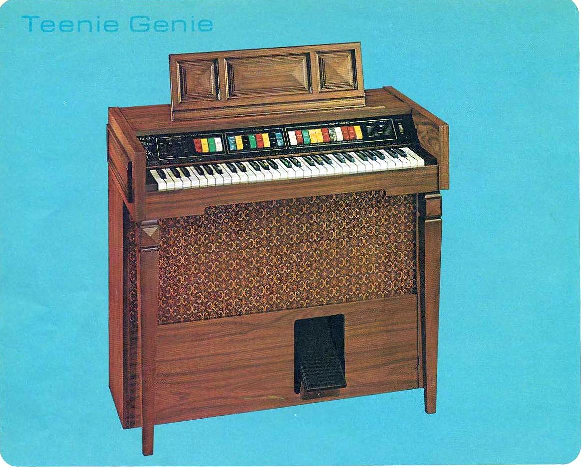 Lowrey Genie - Specifically a Model TG-1 "Magic Teenie Genie", a compact single-manual "chording organ", circa the late 1960s - although the real TG-1 has the pot for adjusting the repeat rate on the outside! The Sato-Phonic is more like one of the larger Lowrey organs (such as the Model TLO-R "Holiday Deluxe") on the inside.