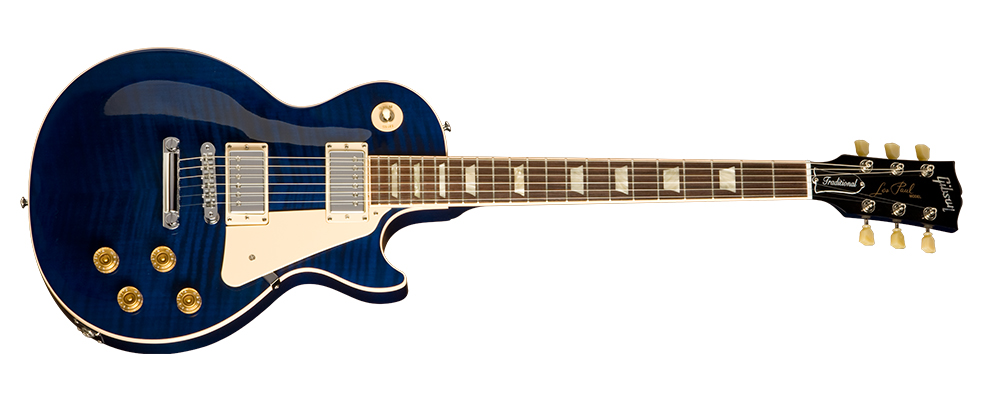 a blue Gīta - This color was called Chicago Blue; it is no longer offered on the Les Paul Traditional in the current Gibson catalog. Compare Gīta, a slightly-earlier-model Standard in Heritage Cherry Sunburst.