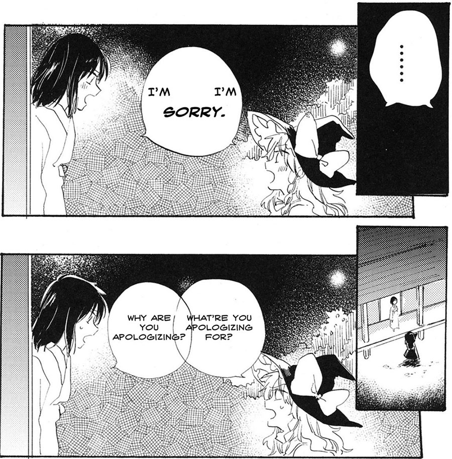 >vest. Speaking of Yonu, here is Reimu and Marisa's relationship encapsulated in two panels (or, well, technically four, I suppose), from the doujinshi Night Flight.