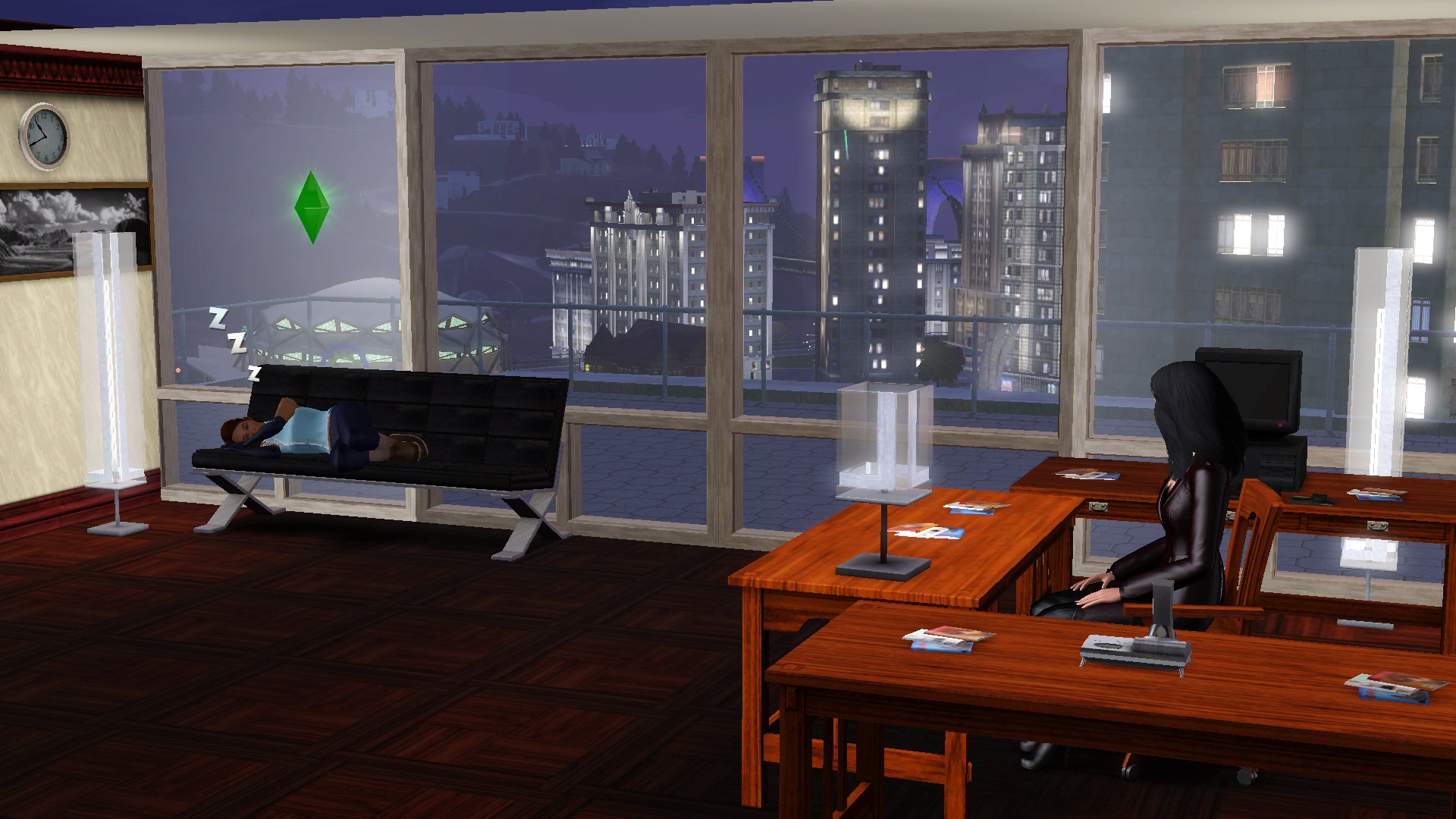 LAST EDITED ON Dec-25-14 AT 12:24 PM (EST) This was one of the earliest images thought of for CTCS, as it sprang from the setup for one of the first scenes written (the one in Asami's office wherein she expects Korra to be asleep and then discovers that she's not). In order to get the staging worked out, I actually made a mockup of the office using one of the downtown apartments in The Sims 3 Late Night.Opinions vary in the EPU studio as to exactly what Asami is thinking in the final illustration, but we've concluded it's probably some proportional combination of the following: - "I suppose I ought to wake her up and send her off to a proper bed. It's obvious dinner isn't happening tonight after all." - "... awwwwwww." - "... huh? Lost my train of thought." and - "Look at that. Boots on the sofa AGAIN. Tch, Water Tribe savage..." (As an aside, I had a tricky time getting the example screenshot taken when the time came. I actually had to disable spontaneous character actions and just use the Korra and Asami Sims as puppets, because if I left them to their own devices - I promise you I am not making this up - not only wouldn't they stay in their assigned places, they couldn't keep their hands off each other. They'd be off to the races almost immediately, and before I could finish hunting for the right camera angle, odds were they'd have left the apartment altogether to go have a quick one in the elevator. That was funny at the time, 14-15 months ago, but it's even funnier now.) --G. -><- Benjamin D. Hutchins, Co-Founder, Editor-in-Chief, & Forum Mod Eyrie Productions, Unlimited http://www.eyrie-productions.com/ zgryphon at that email service Google has Ceterum censeo Carthaginem esse delendam.