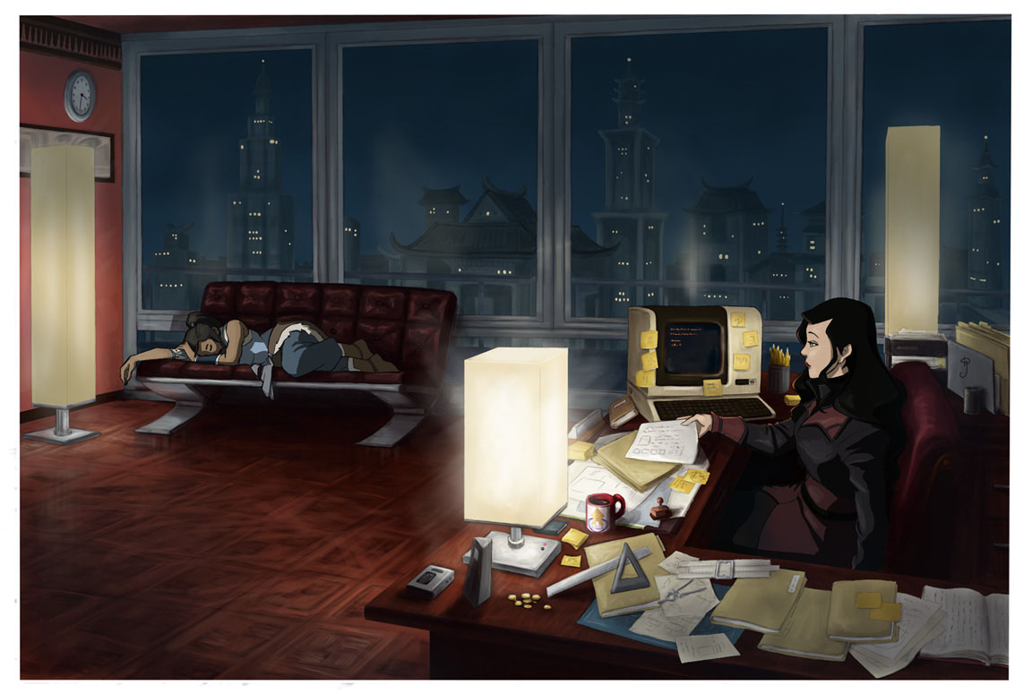 I suspect that Asami's office sofa is crazy comfortable.I also suspect that in the grand scheme of things, comfort isn't the main reason Korra naps there. Matrix Dragon, J. Random Nutter