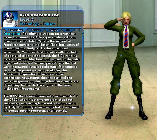 I rolled Harry as a laugh to go along with Theodore (if there was any justice in the world and the game had wheelchair options, it would've been FDR. in a Prof. X hoverchair? with the *echo?* tellin' you...) as a Fire/Energy Blaster, a cheeky reference to the whole nuking Japan thing. Turns out the build is a levelling *monster.* Who knew. :)