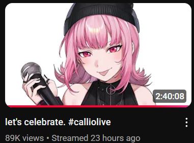 >I understand that a lot of us are scarred from the first half of this >year. I am too. But jeez, guys. You gotta do something about that >context blindness. I guess it's a sign of how out of the loop I've been of late that I saw the thumbnail and just assumed it was yet another karaoke stream. There's a part of me that genuinely believes that Calli will be the last of the "old breed" to go. And that the only appropriate way to end her graduation stream will be with her turning off the lights as she closes the door behind her.