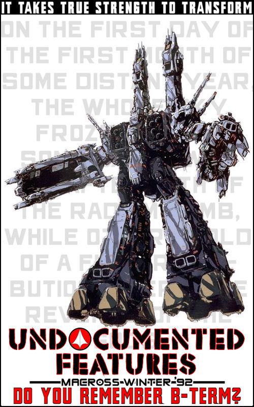 >And I love the riff on Macross II. :) Not Macross II: Lovers Again, but rather Macross: Do You Remember Love?, which IIRC was a bit metafictional itself: in the Macross universe, it's a historical movie about the war. (That said, despite its moments of pure cheese, I actually like Macross II.)