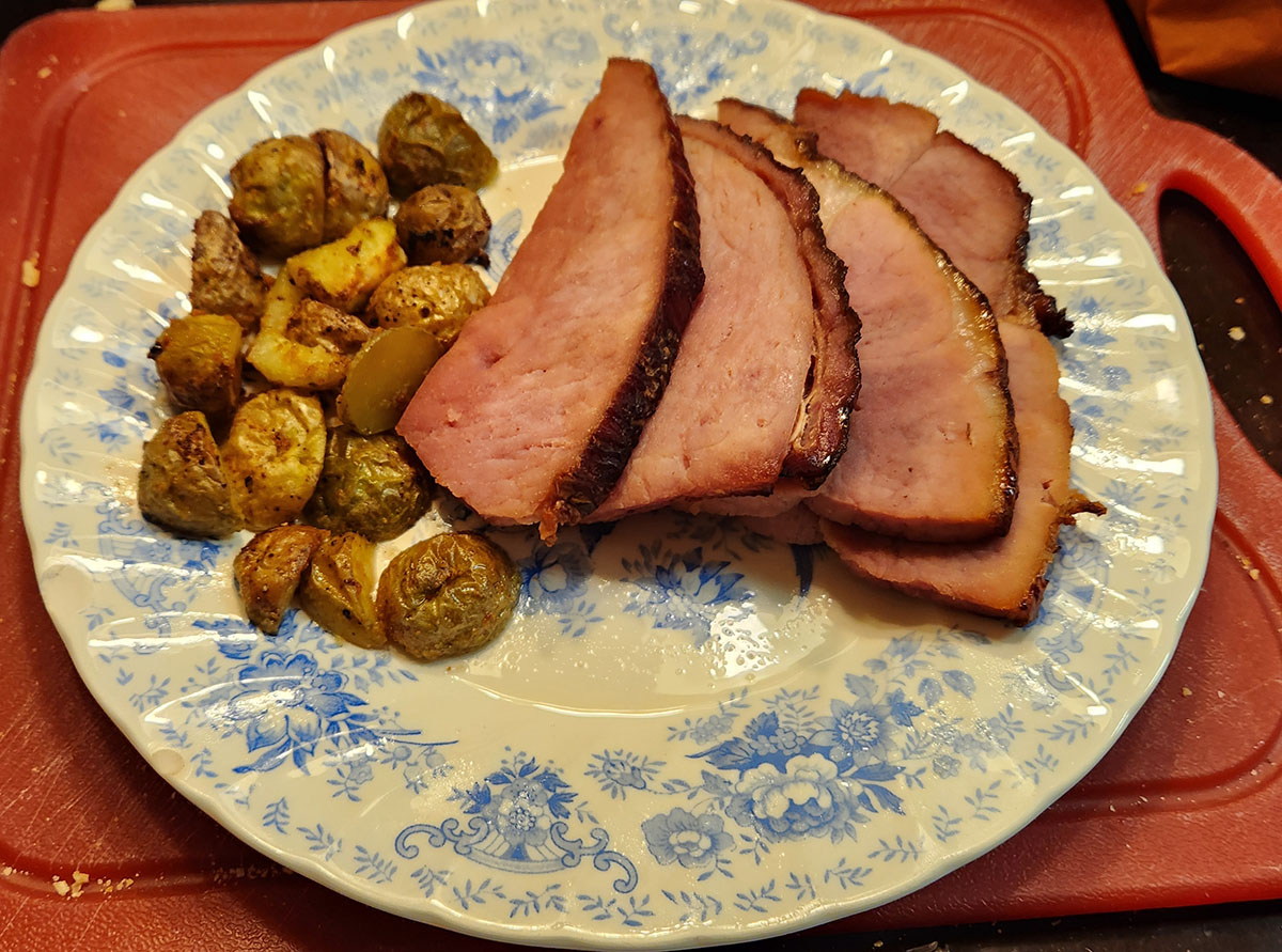 >I... don't think Mother has quite apprehended the portioning >limitations I'm now operating under. Geez, that looks like a pretty big serving of ham even without that part. Assuming that plate is the size I think it is anyway. Also, hey, someone else who has ham for Thanksgiving! My dad pretty much refuses to eat bird, so ham has been our go-to for holiday meals for as long as I can remember. -IA. (also this forum existing reminded me that i should cook some rice tonight) |