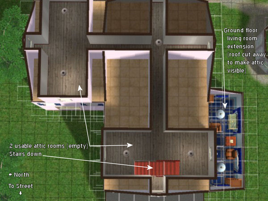 The grid lines are artifacts of the Sims 2 building mode, in which these screenshots were taken.